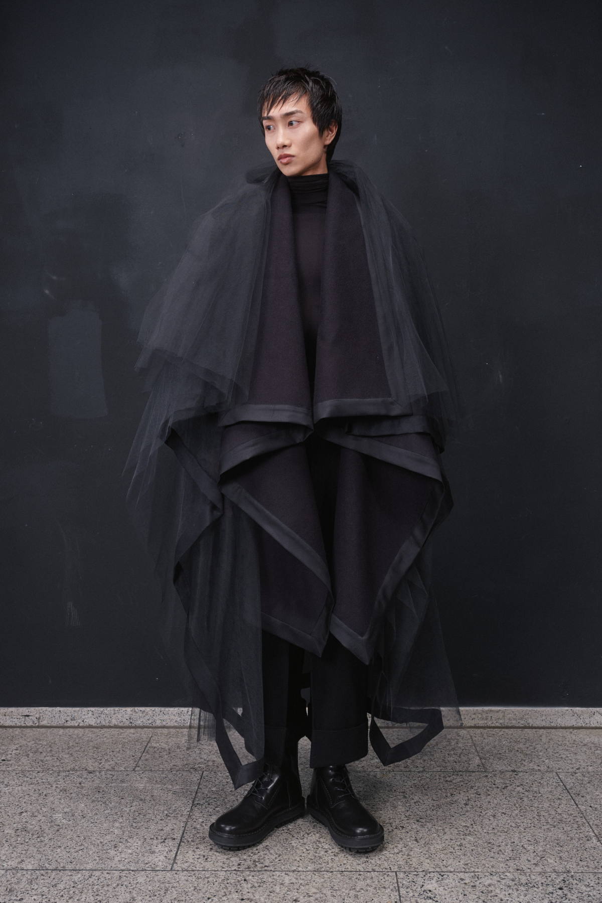 But my ambition goes even further. I always ask myself how a presentation can communicate more than clothing alone, how it can evoke a feeling, open a space for imagination, invite people to dream, or even tell stories without explicitly narrating one. For me, performance and installation are tools to translate the emotional and mental world behind a collection into something physically experienceable.