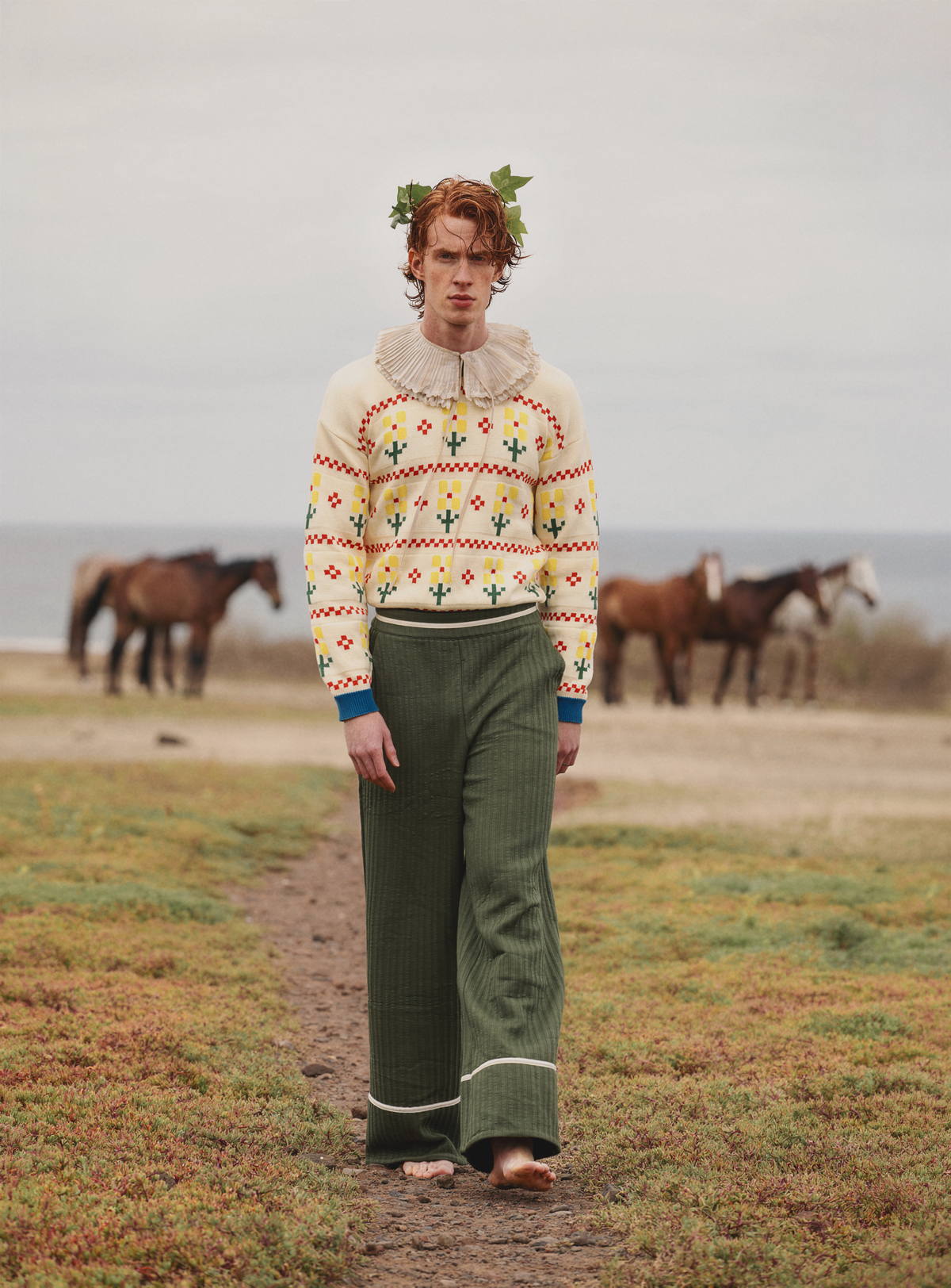 Sweater by VIVIENNE WESTWOOD, combining responsible sourcing with a strong activist narrative. Wool Trousers by DRIES VAN NOTEN, developed through a mindful production approach and long-term design vision.