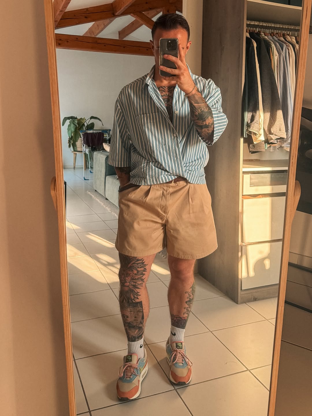 The catch is that half-measures don’t work here. If you’re going to wear a button-up with short shorts, you have to actually wear it—with conviction, with a shirt that fits well, with shorts that aren’t trying to be something else. The guys who pull this off aren’t doing it reluctantly. They’re doing it because they decided to, and that decision reads. So if you’re considering it, start hitting the squat rack now. Beach season doesn’t wait.