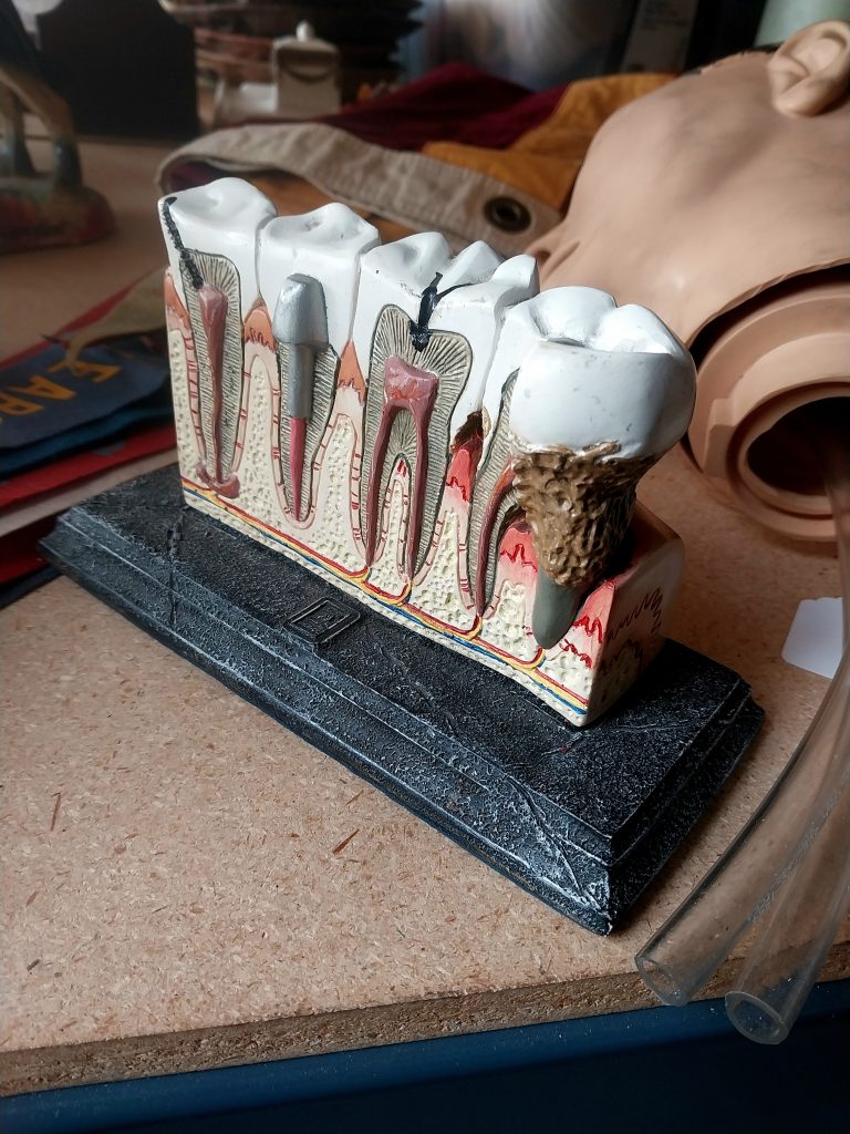 We have stuff for every aesthetic. Whether you want an absolutely stunning vintage altar cloth or an anatomical sculpture of some teeth, we’ve got you covered.