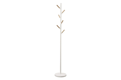 This rack can accommodate a variety of coats and bags, and the powder-coated steel frame and wooden hooks can withstand frequent use.