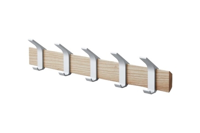 This key rack has five hooks for storing keys, hats or glasses. It can be mounted on a wall or attached to a metal surface using a magnetic backing.