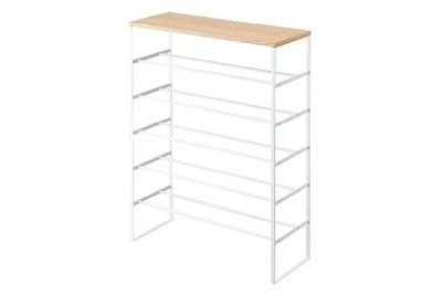 Yamazaki Home makes several space-saving shoe racks made from durable yet thin powder-coated steel, and two of them are our picks in our guide.